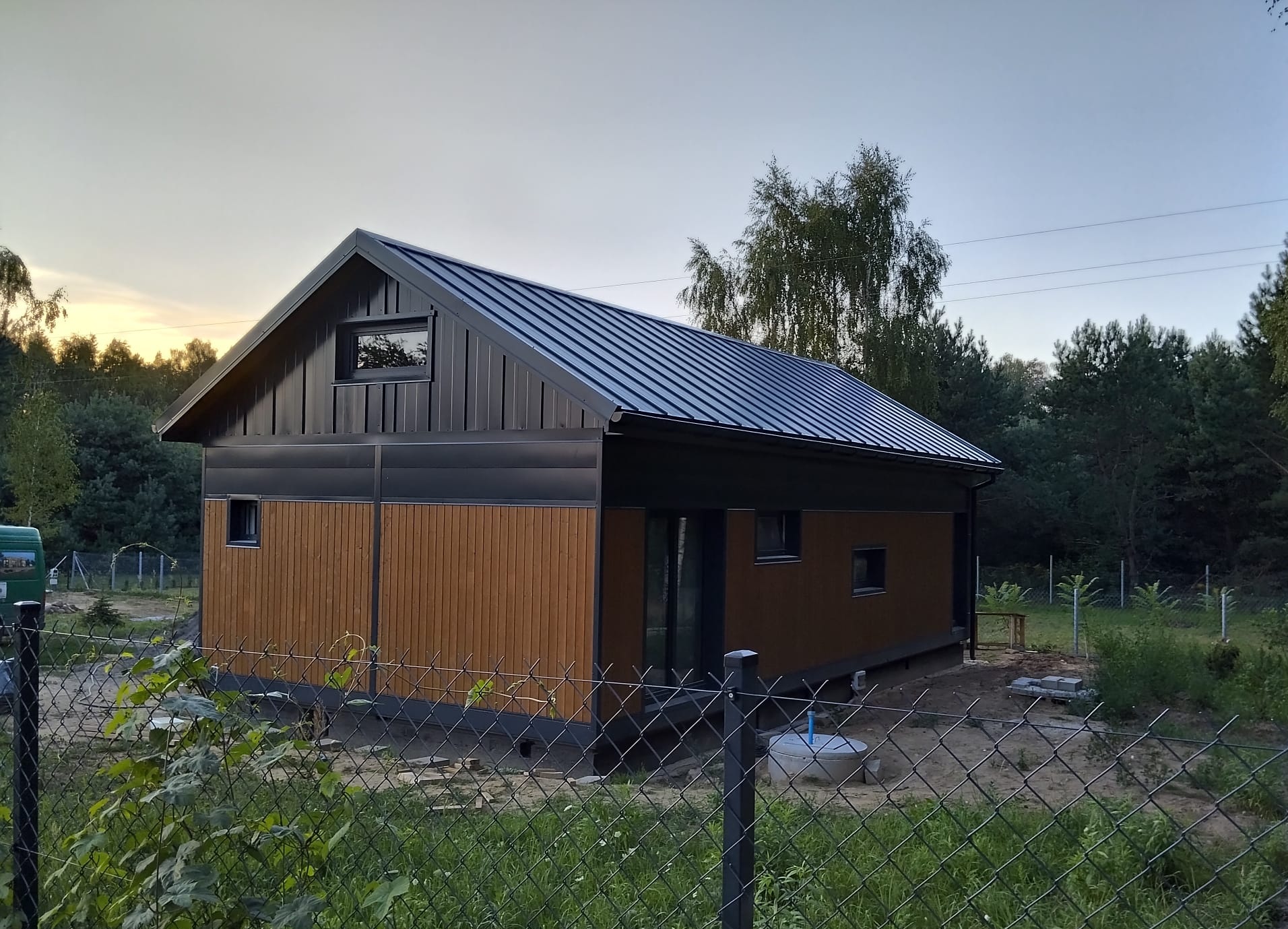 • Fundament i teren: spadek terenu od budynku, opaska żwirowa, brak zastoin wody po deszczu.